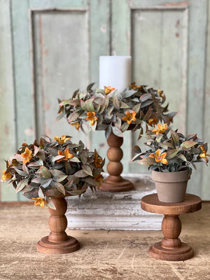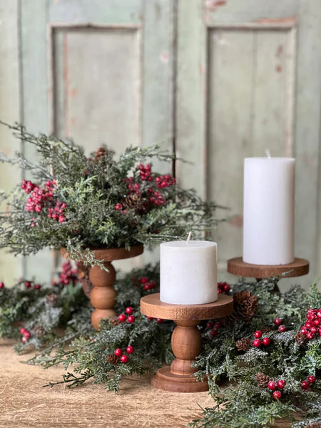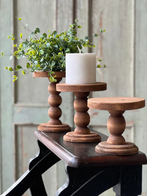 This trio of small holders offers a huge amount of versatility! With their petite stature, these can be easily added to any space, shelf, or display with ease. Boasts a pretty silhouette and natural wood grain pattern (also subject to natural imperfections). Each sold separately.