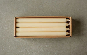 Cream Unscented 10" Taper Candles In Box - Set of 12