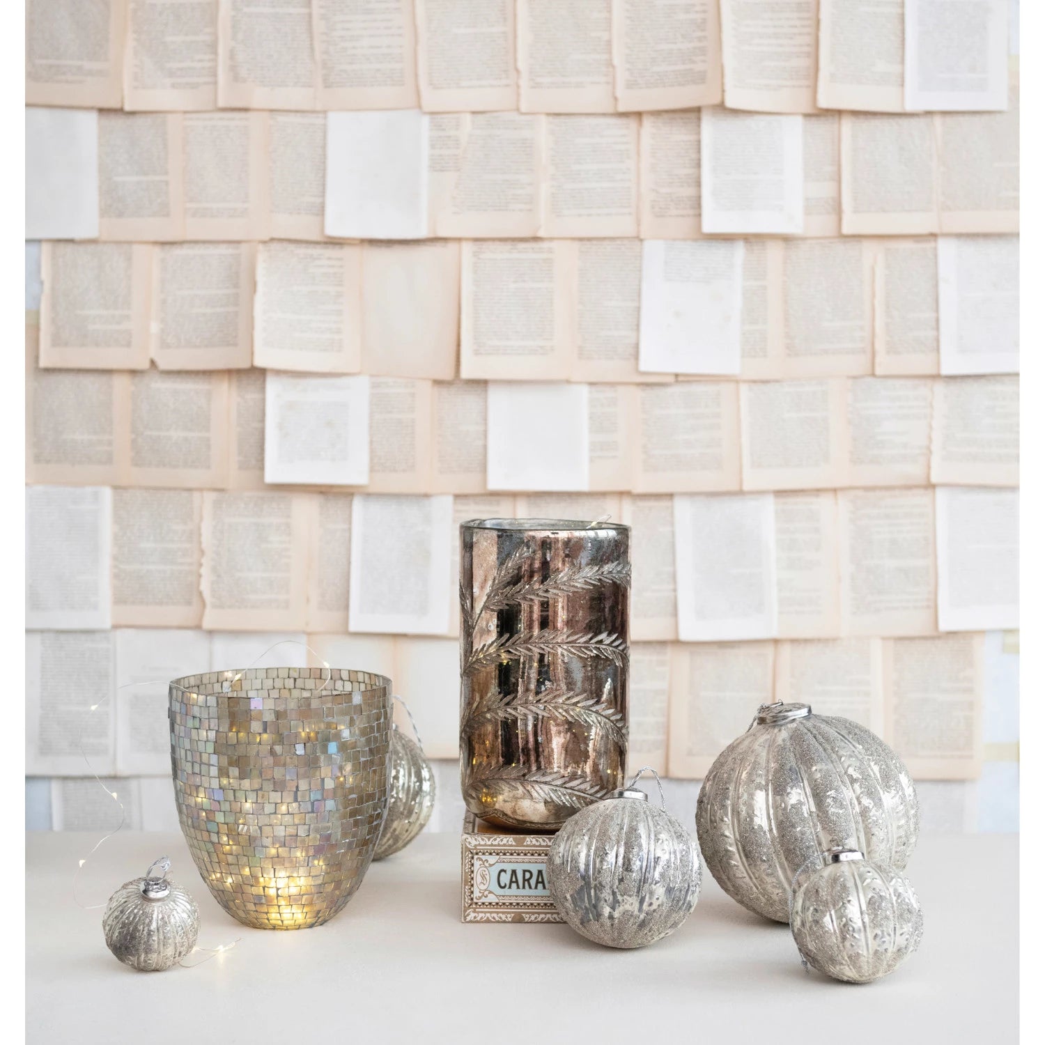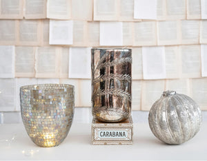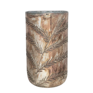 Etched Mercury Glass Hurricane Vase in Antique Silver Finish