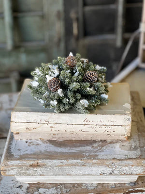 Popular and petite, the Snowy Mini Cone collection features pine greenery interspersed with pine cones topped with heavy snow, glitter and mica for a wonderfully wintry effect.