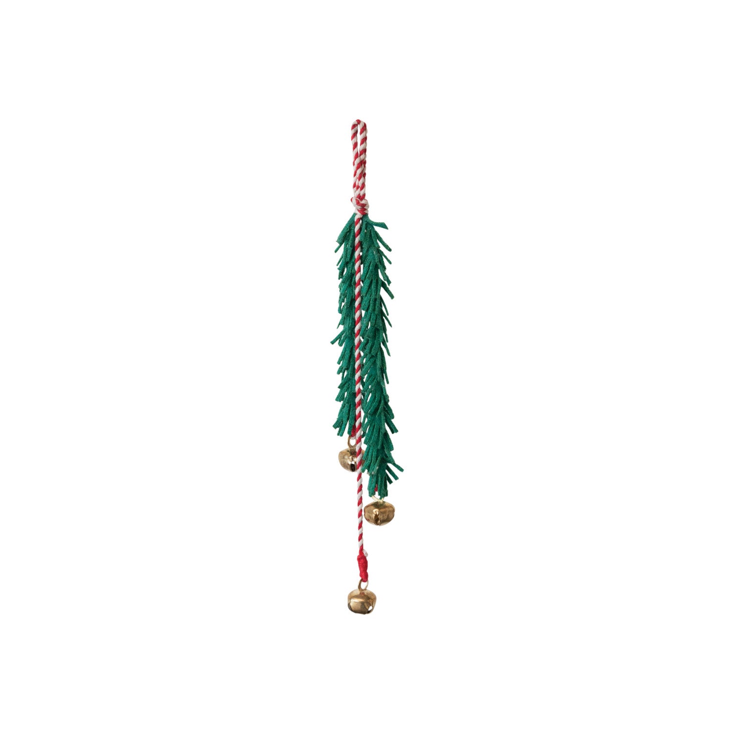 Handmade Cotton & Wool Leaf Hanger w/ Jingle Bells, Multi Color