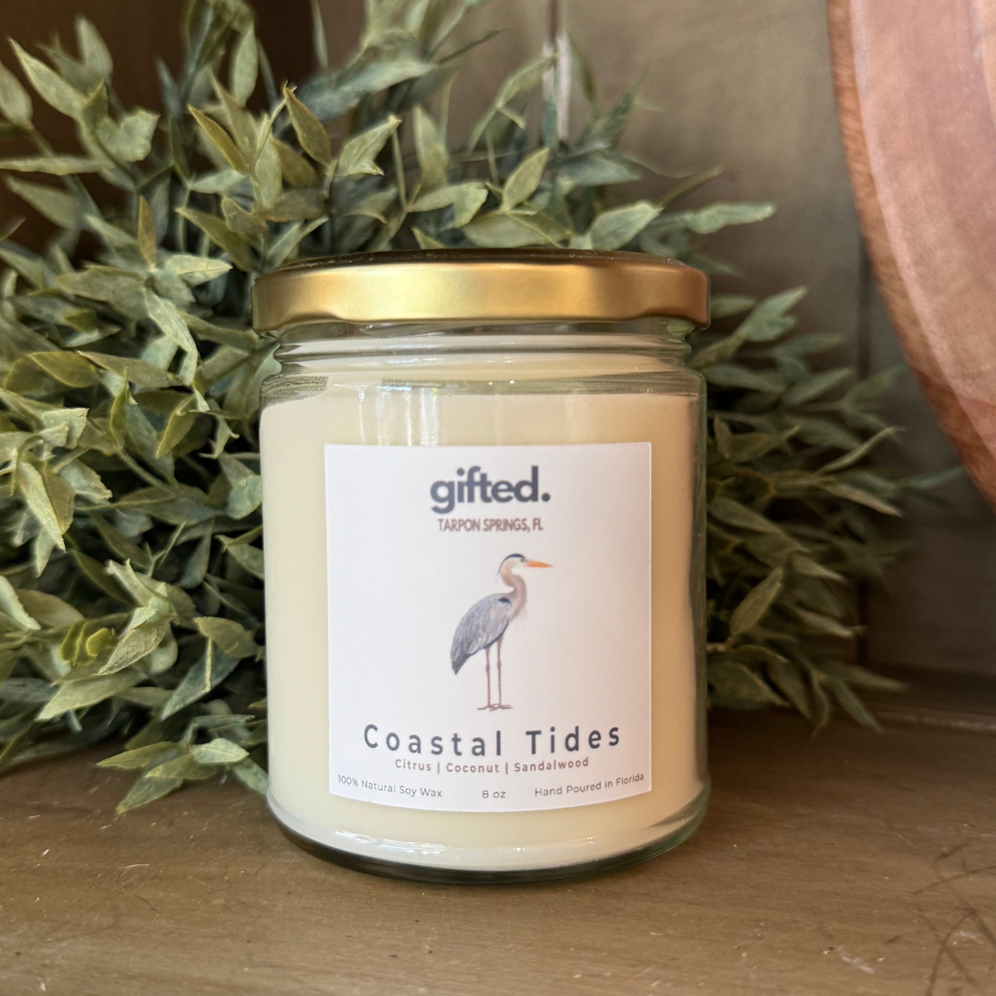 Coastal Tides – Clean-Burning Soy Candle | Citrus, Coconut & Sandalwood (8oz Gold Lid Jar)