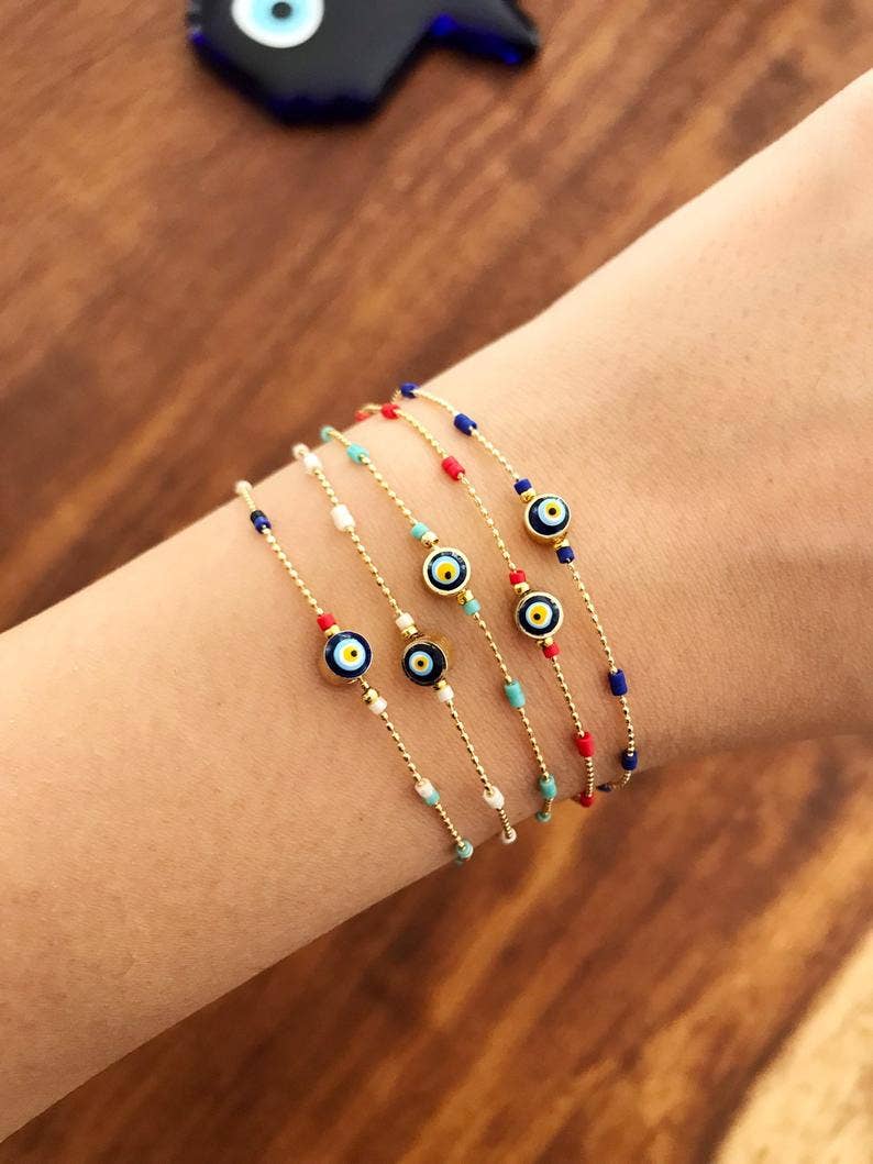 Evil Eye Bead Bracelet, Minimalist Bracelet, Gold Chain Bracelet