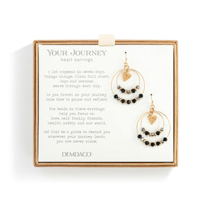 Packaging Sentiment: A lot happens in seven days. Things change. Plans fall short. Joys and sorrows weave through each day. As you travel on your journey, take time to pause and reflect. The beads in these earrings help you focus on love, self, family, friends, health, safety and our world. Let this be a guide to remind you wherever your journey leads, you are never alone.