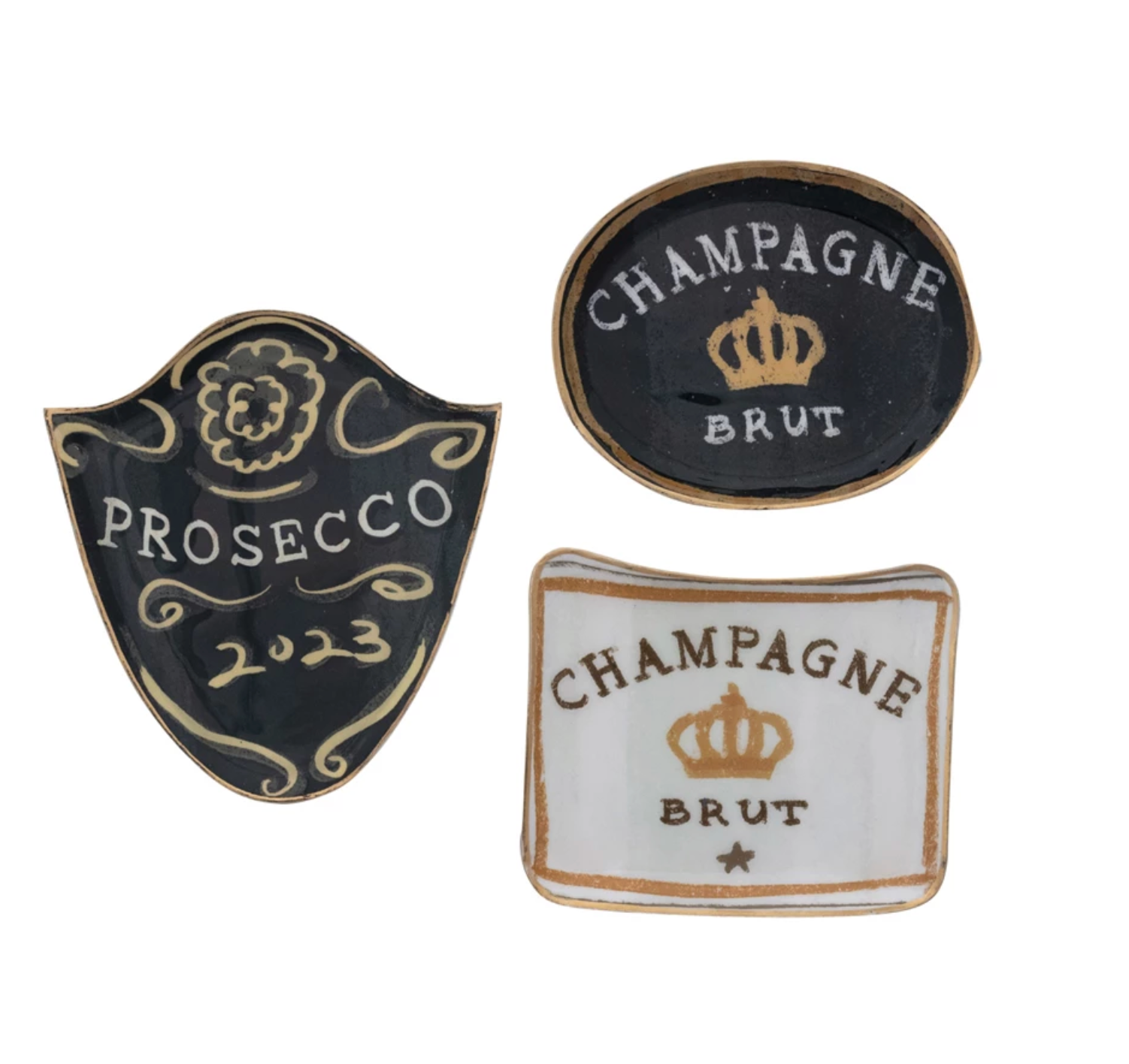 Enameled Metal Tray with Gold Edge, 3 Styles