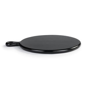 This sleek black round wood serving board brings an elegant touch to your at-home gatherings. This artisan serving board will match any formal or casual table setting.