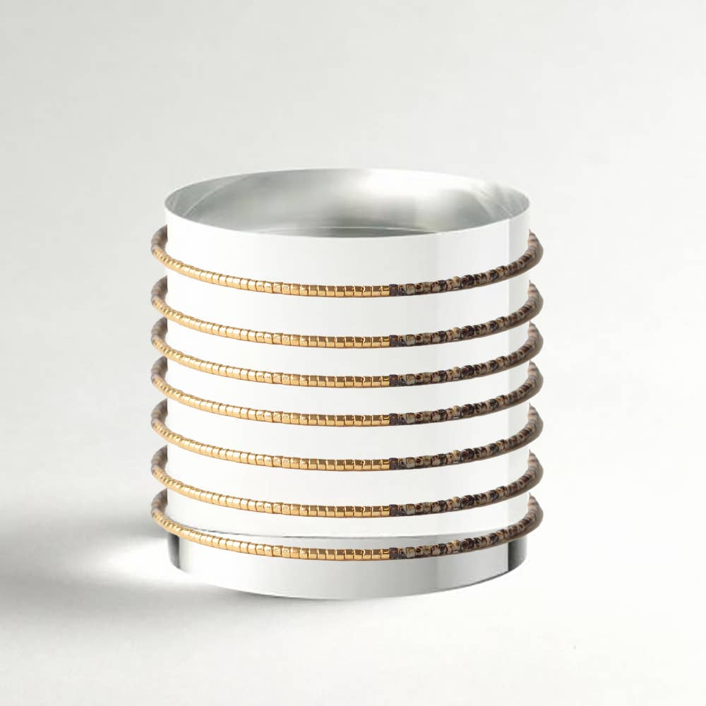 Gold Beaded Bracelets-Uno, Mixed Metals, Gilded Stretch