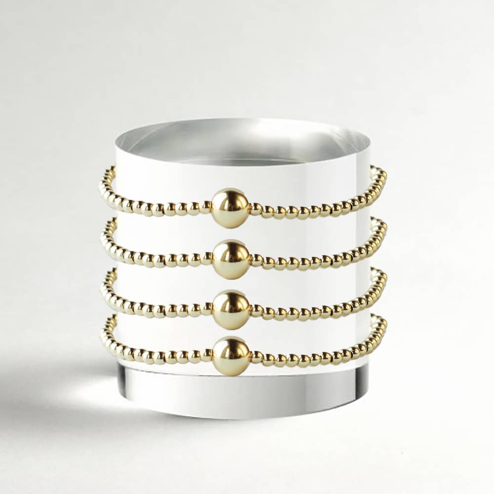 Gold Beaded Bracelets-Uno, Smooth, Gilded Stretch Bracelets