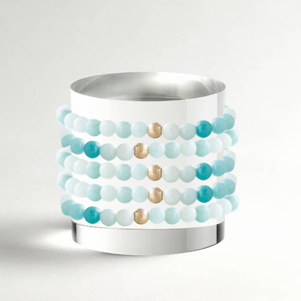 Gilded Gold Beaded Bracelets-Dot, Amazonite