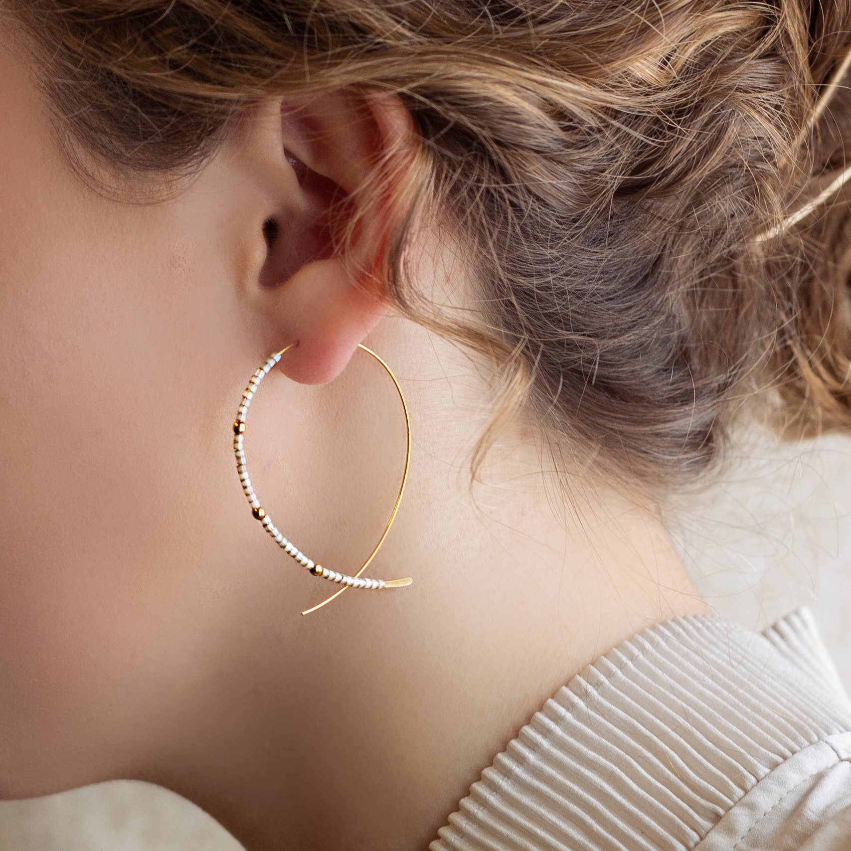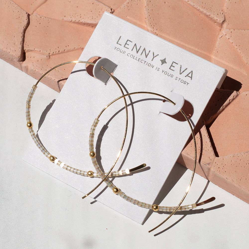 The Lenny & Eva Confetti Earrings offer a delicate touch with soft, neutral-colored glass beads, making them the perfect accessory for any outfit. With their refined design and understated charm, these earrings are a versatile addition to your boutique’s collection. A best-seller with a high sell-through rate, Confetti Earrings create repeat business thanks to their timeless appeal and affordable price point. Ideal for customers who love understated, easy-to-wear accessories that add just the right amount of detail. Tip for display: Display the Confetti Earrings on our display base for a refined look, and for added impact, pair them with the matching Confetti Bangles to create a beautifully coordinated, serene display. * 2mm glass Miyuki beads * 2-3mm 12k gold plate beads * gold-plated brass wire * made in USA