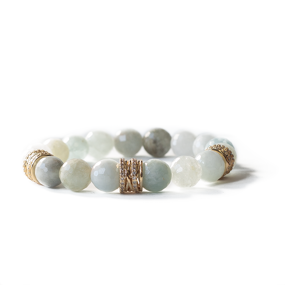 Gilded Gold Beaded Bracelets-Row,Aquamarine