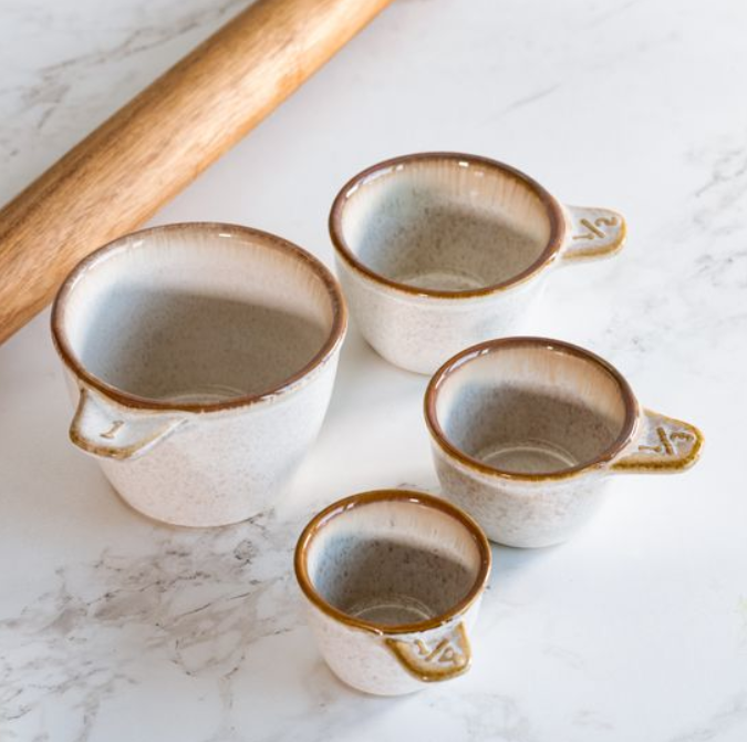 Hand-Stamped Stoneware Measuring Cups w/ Flowers, Set of 4