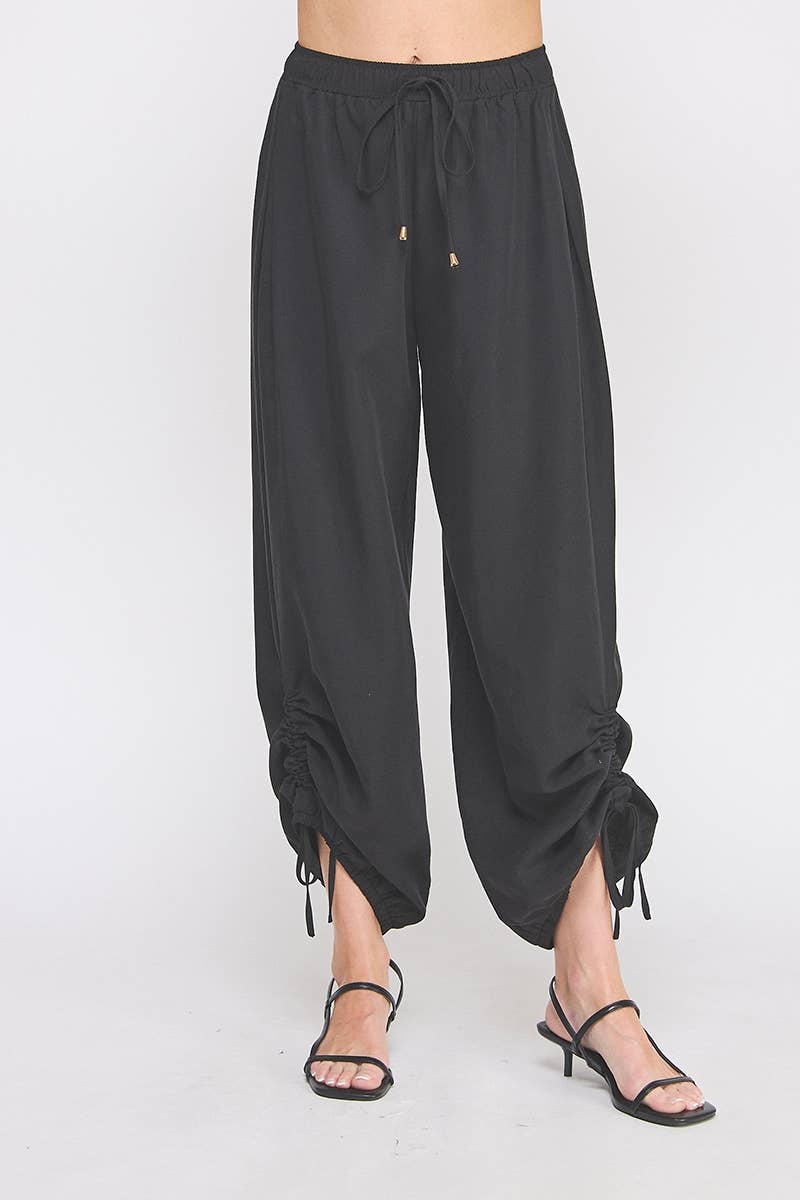 Drapey twill, adjustable scrunch jogger