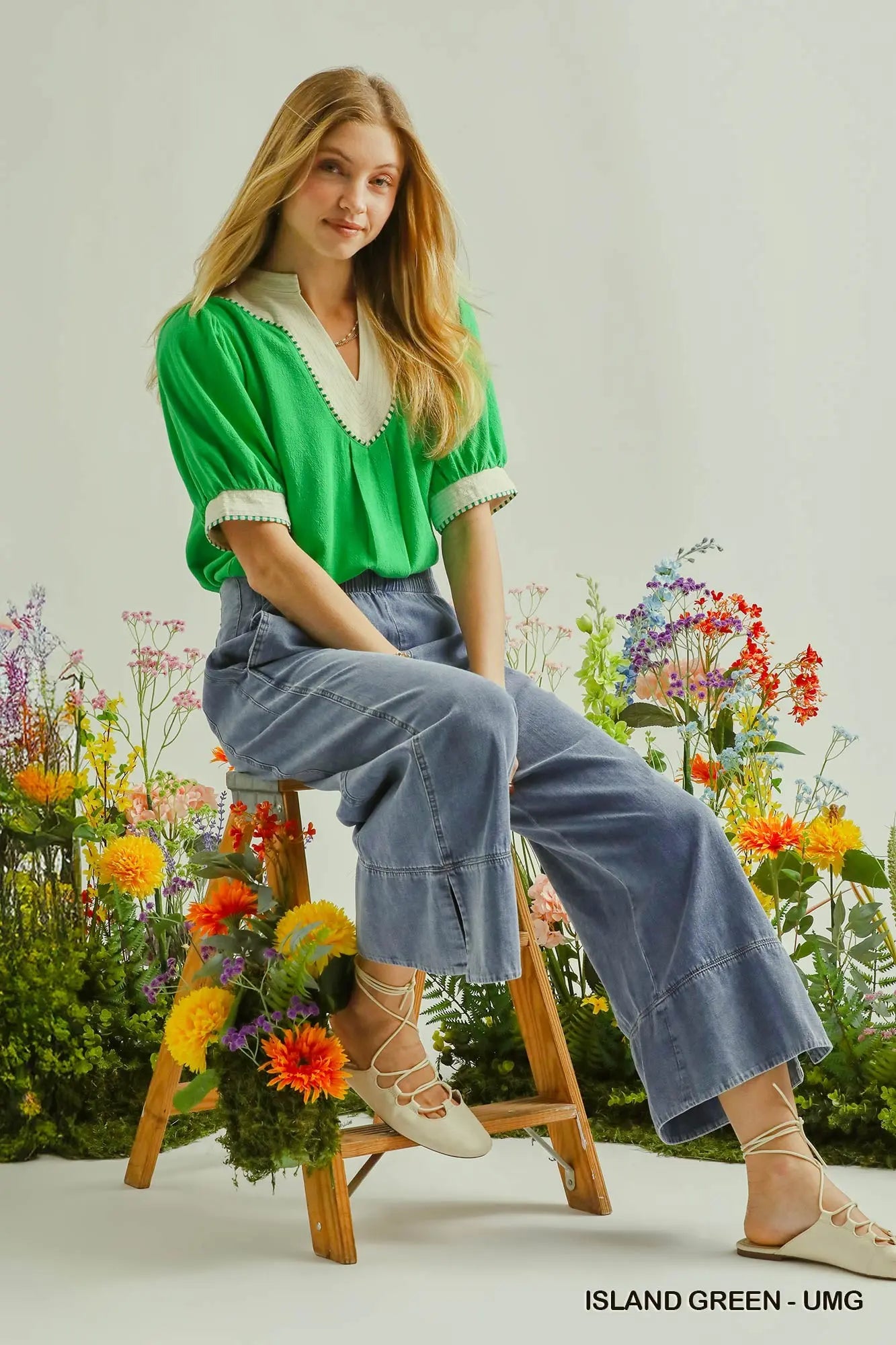 Linen Blend Contrast Trim Top