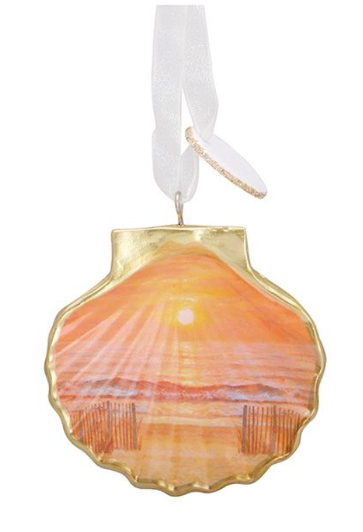 Resin Ornament - Decorated Scallop Shell Sunset Beach