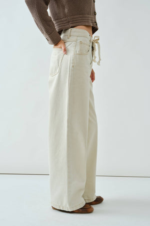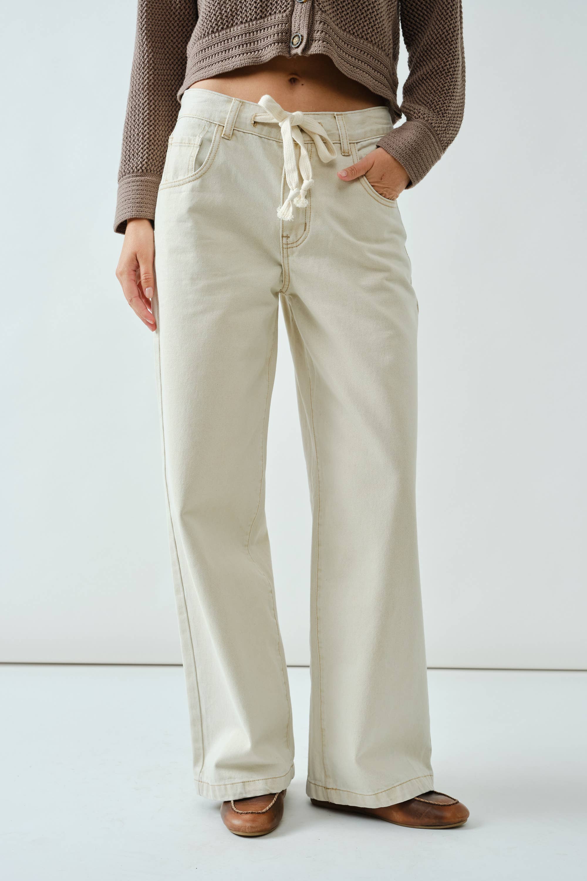 DRAWSTRING WAIST BOTTOM FLY STRAIGHT JEANS