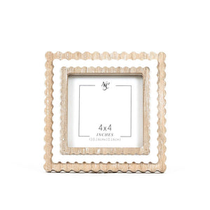 6x6x1 wood photo frame (SCALLOP) holds 4x4 photo, natural/white Lots of raised wooden dimension with this one -- great seller! Back in stock and shipping now! Search "Scallop" in our store to find more frames, colors & sizes