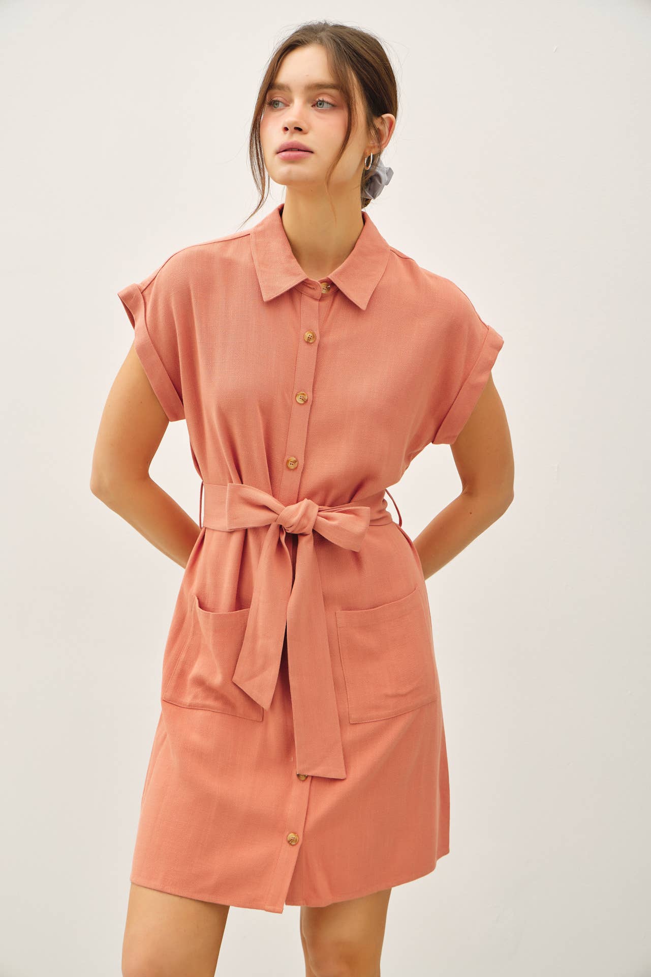 BUTTON UP SHORT SLEEVE DRESS