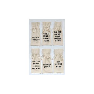 Cotton Wine Bag with Saying, 6 Styles