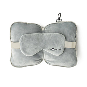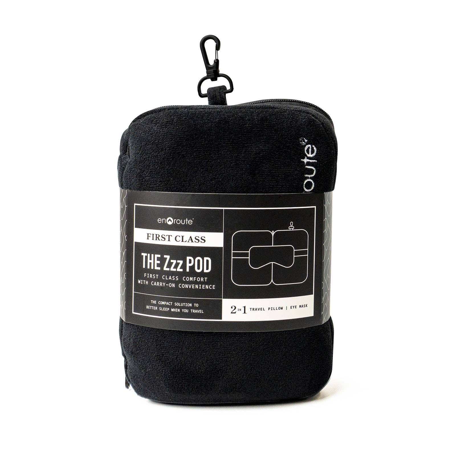 En Route® The Zzz Pod 2-in-1 Travel Pillow & Eye Mask Catch some Zzz’s in any travel mode with this unique 2-in-1 eye mask and pillow pod. Designed for the center seat or bumpy car, this blackout eye mask acts as a strap to keep an ultra plush pillow safely in place around your head. Fold, zip and clip for easy storage while traveling. -Compact travel pillow + attached sleep mask -Foldable, zip-close design + mini carabiner -Super soft microfiber -Plush support for any setting/position -3 colors: pink, black, gray -12 piece assortment -Reorder by color in packs of 8 -Ships in a free counter display -Custom wrap band + peggable carabiner