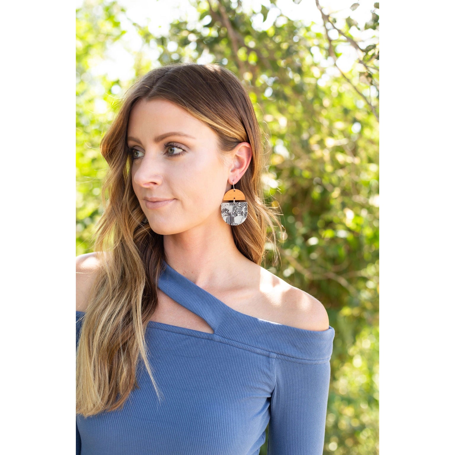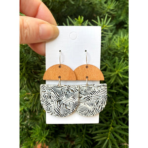 Lightweight wood and acrylic in eye catching shapes. They measure a little under 2 inches (not including earwire).