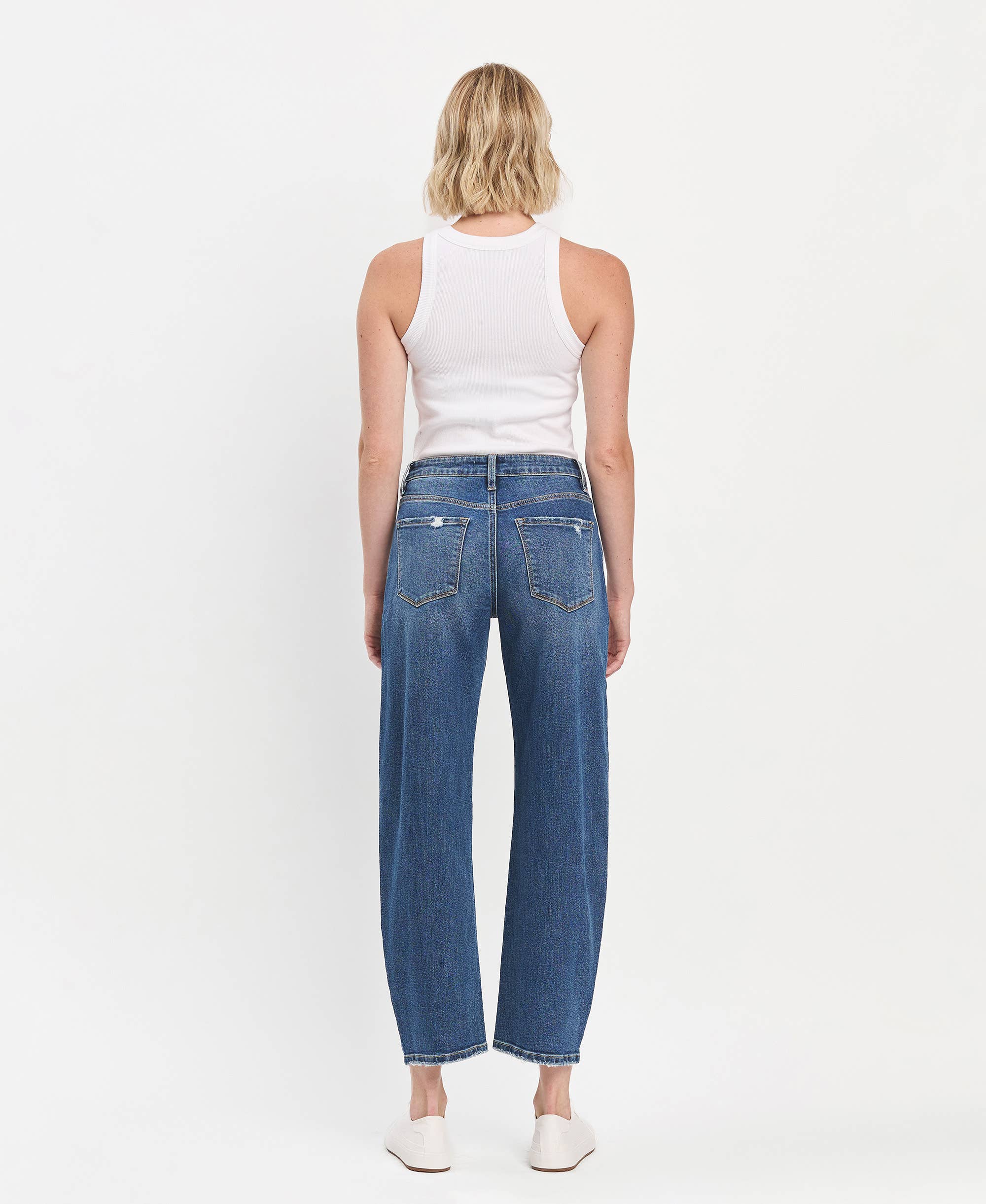 HIGH RISE MEDIUM DARK WASH ANKLE BARREL JEANS LV1440