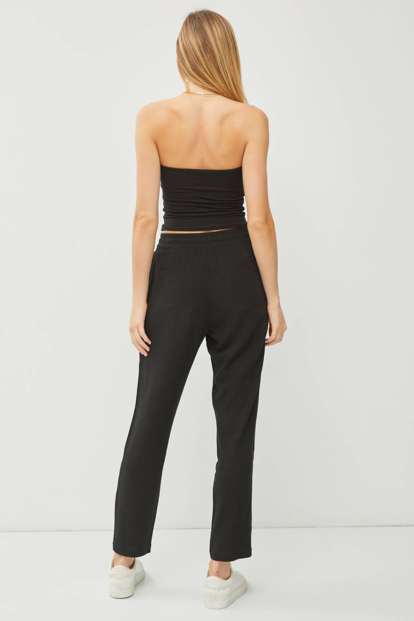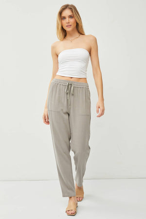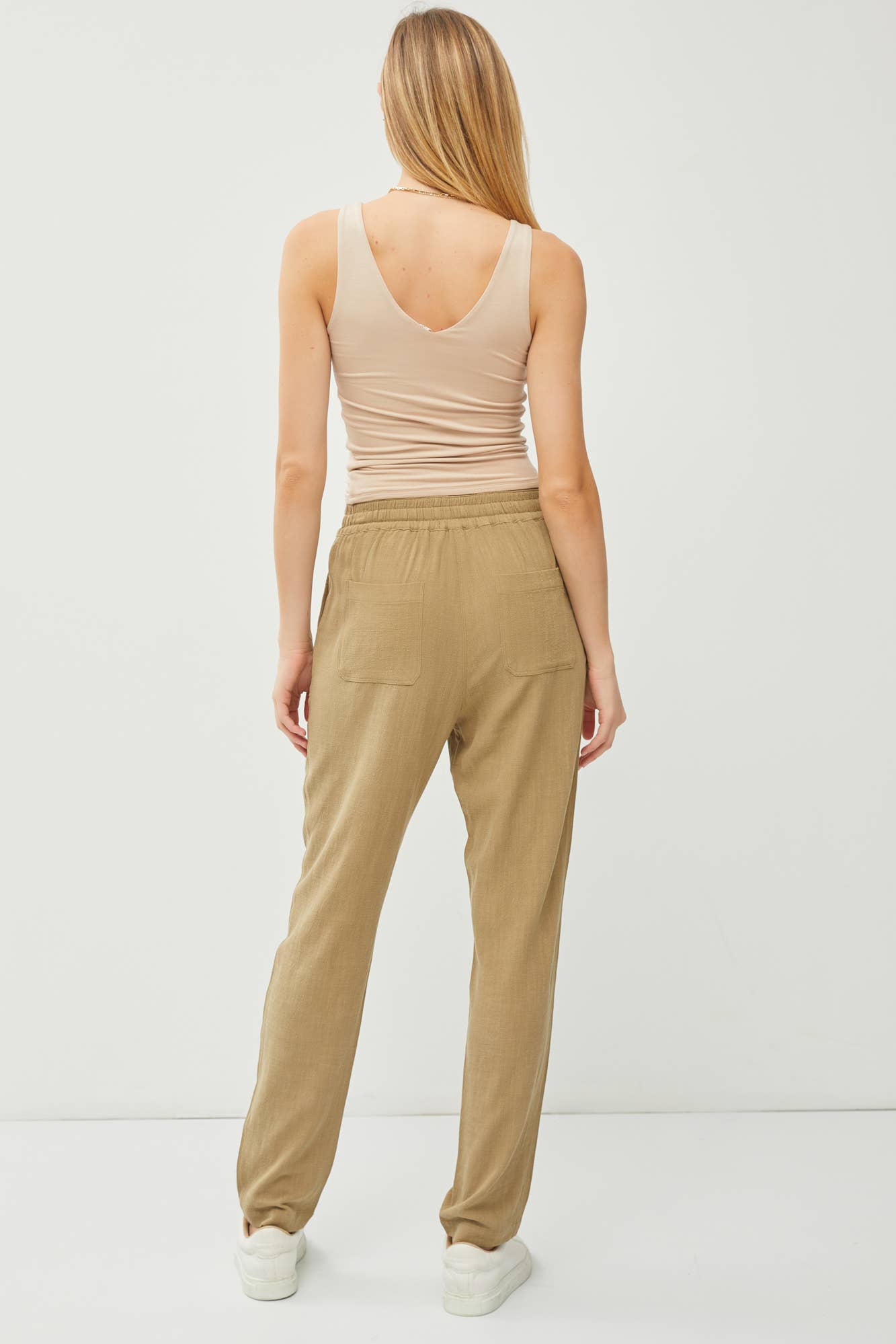 LINEN DRAWSTRING JOGGERS WITH FRONT AND BACK POCKETS.