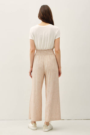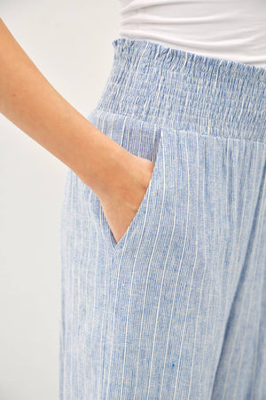 STRIPED LINEN BLEND WIDE LEG PANTS