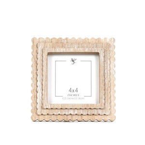 6x6x1 wood photo frame (SCALLOP) holds 4x4 photo, natural