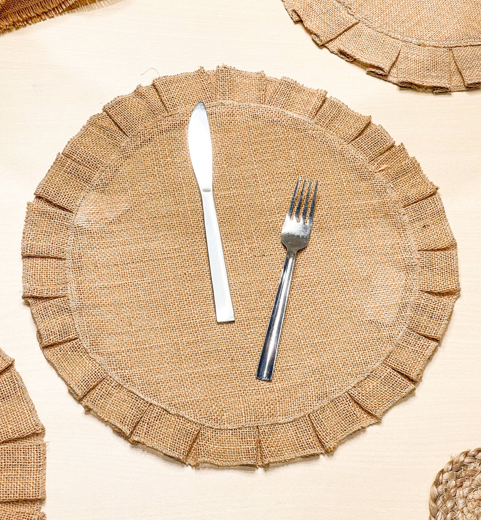 Set of 4 Burlap Round Placemats, 15 Inch