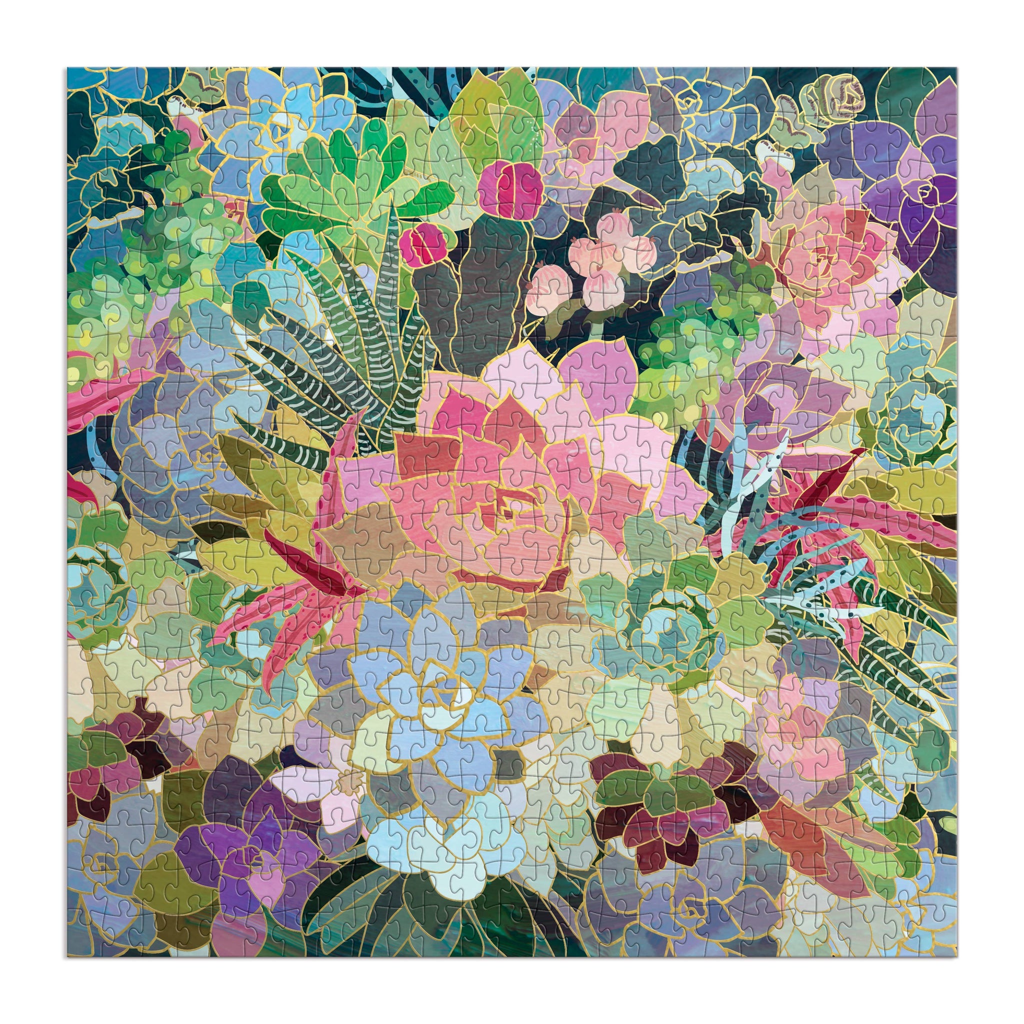 The Succulent Mosaic 500 Piece Foil Puzzle from Galison illustrates the multitude of color within the world of succulents, with the plants coming alive with shiny gold foil accents. Galison puzzles are packaged in matte-finish sturdy boxes, perfect for gifting, reuse, and storage. • 500 pieces, some with gold foil accents • Box Size: 8" x 8" x 2", 203 x 203 x 51 mm, Puzzle Size: 20" x 20", 508 x 508 mm • Includes Puzzle Insert with Full Puzzle Images • Virtually No Puzzle Dust • Puzzle greyboard contains 90% recycled paper. Packaging contains 70% recycled paper and is made responsibly from FSC-certified material. Printed with nontoxic inks.