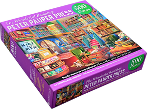 Have a seat and relax awhile in this magical bookshop! What's your pleasure? History, Mystery, Fantasy, or Poetry? Curl up with a book and a bookstore cat (or dog)! Get lost in this beautiful bookstore puzzle! Watch the vibrant scene come together, piece by piece! 500 precision-cut pieces fit snugly. Linen-textured surface reduces glare. Durable premium blue puzzle board. High-resolution puzzle image features rich, sharp, vivid color. Full-sized, full-color poster of finished puzzle included for your reference. Hours of fun! Finished puzzle measures 28'' wide x 20'' high. Sturdy, full-color puzzle box measures 9-1/4'' square x 2'' deep. Warning: Choking hazard. Small parts. Not for children under 3 years.