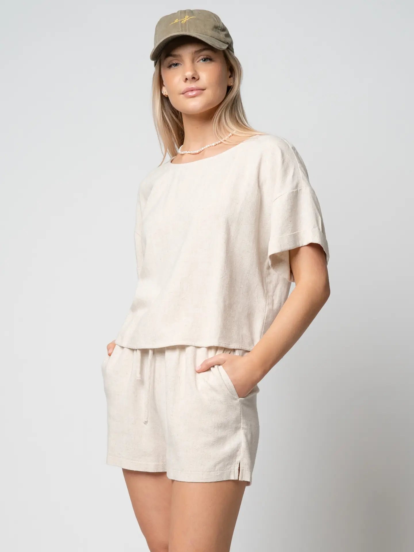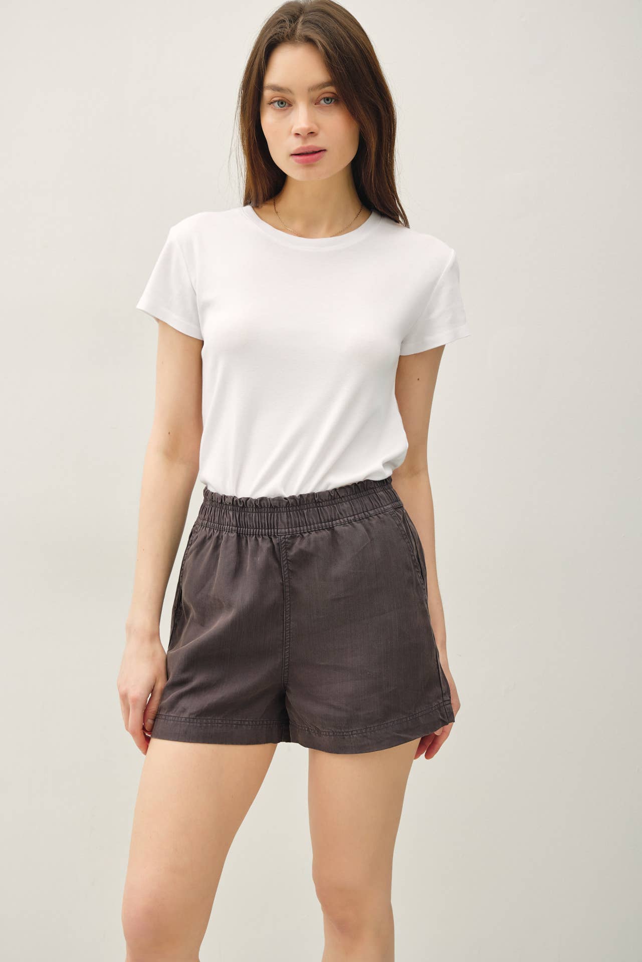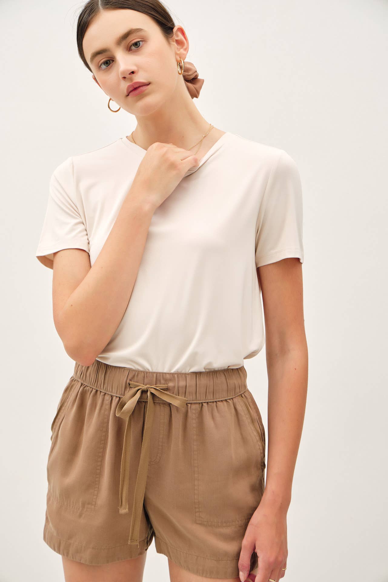 HIGH RISE PULL ON DRAWSTRING TENCEL SHORT