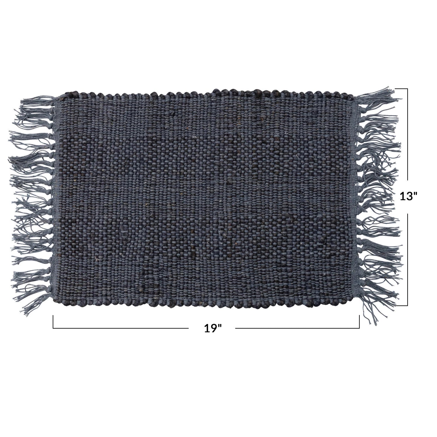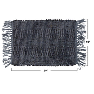 Woven Jute & Cotton Placemat w/ Fringe, Blue, 19"L x 13"W
