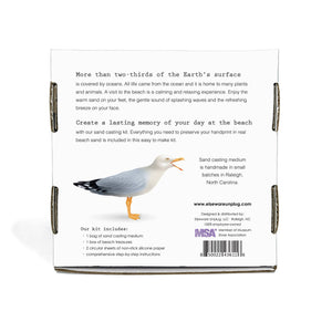 Create and preserve precious memories! Everything you need including sand casting medium and a package of beach treasures are included in our unique kit. Contains enough sand for two 6 inch discs for small hands prints or 1 twelve inch disc for larger hand prints. Just add water and bake!