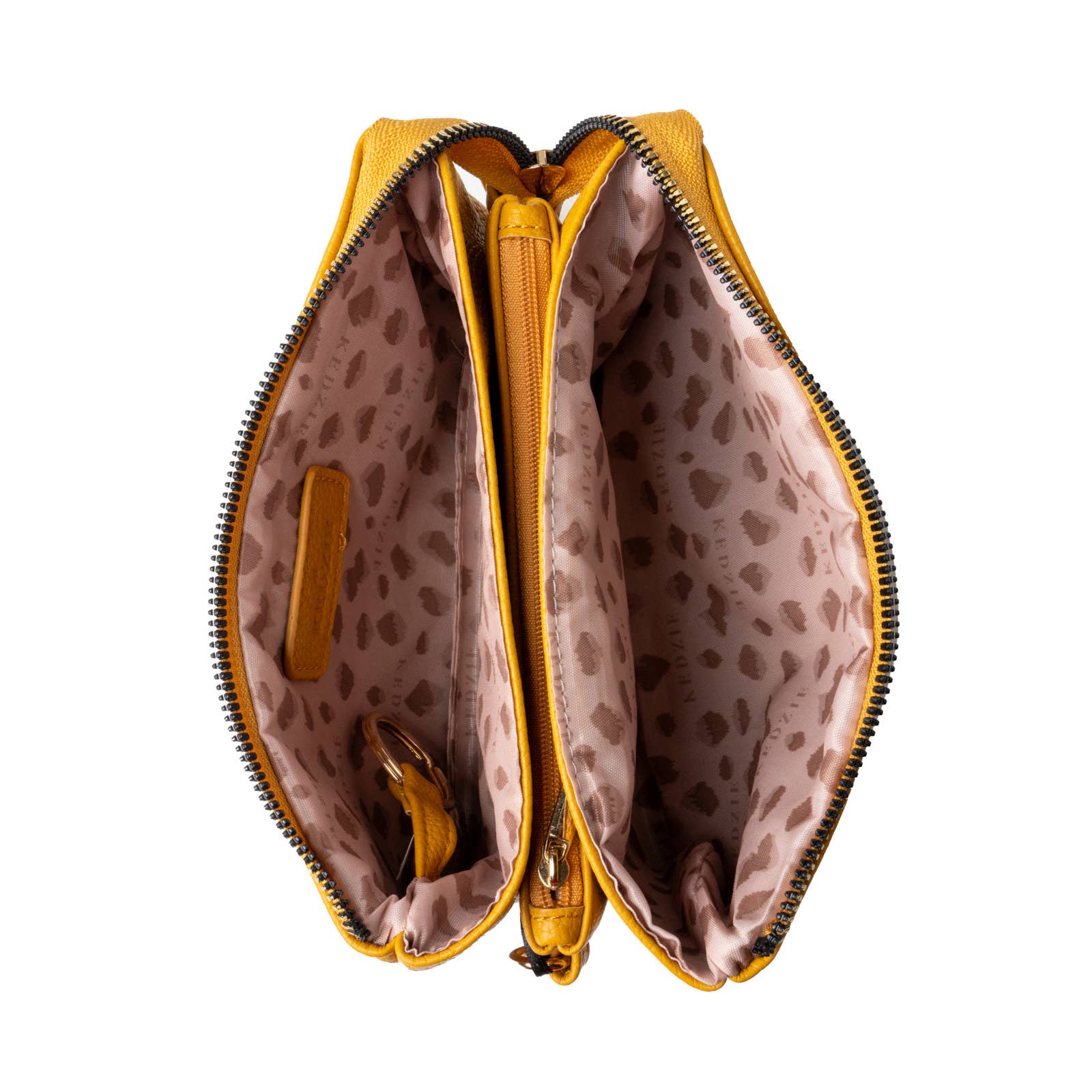 Neutral cheetah print lining Smooth-glide resin zippers with branded pull