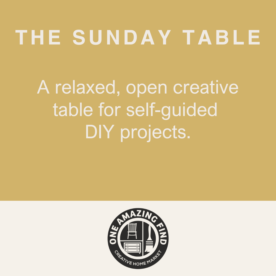 The Sunday Table is an open, self-guided creative experience designed for slow projects, easy conversation, and time at the table. Guests are invited to purchase a DIY kit from our shop and use the workshop space to work at their own pace.
