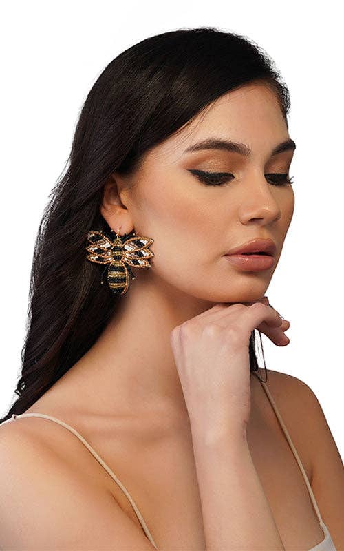 * Golden Bee Earrings * Hand crafted in black, white and gold beads, Made by skilled artisans