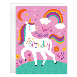 Greeting card with Envelope Have a Magical Birthday Hope your day is filled with fun surprises! Embellished with gold glitter Folded size: 4.25" x 5.5" (A2). Proudly made in the U.S.A.