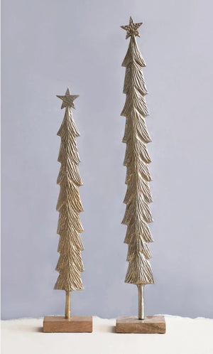 Brass Finish Cast Metal 30.25" Christmas Tree with Mango Wood Base