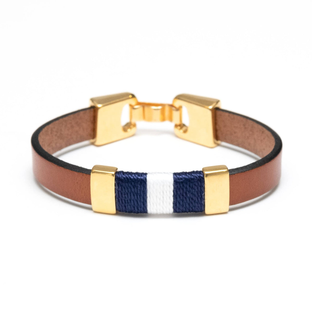 Bristol - Mahogany/Navy/White/Gold - Leather Bracelet