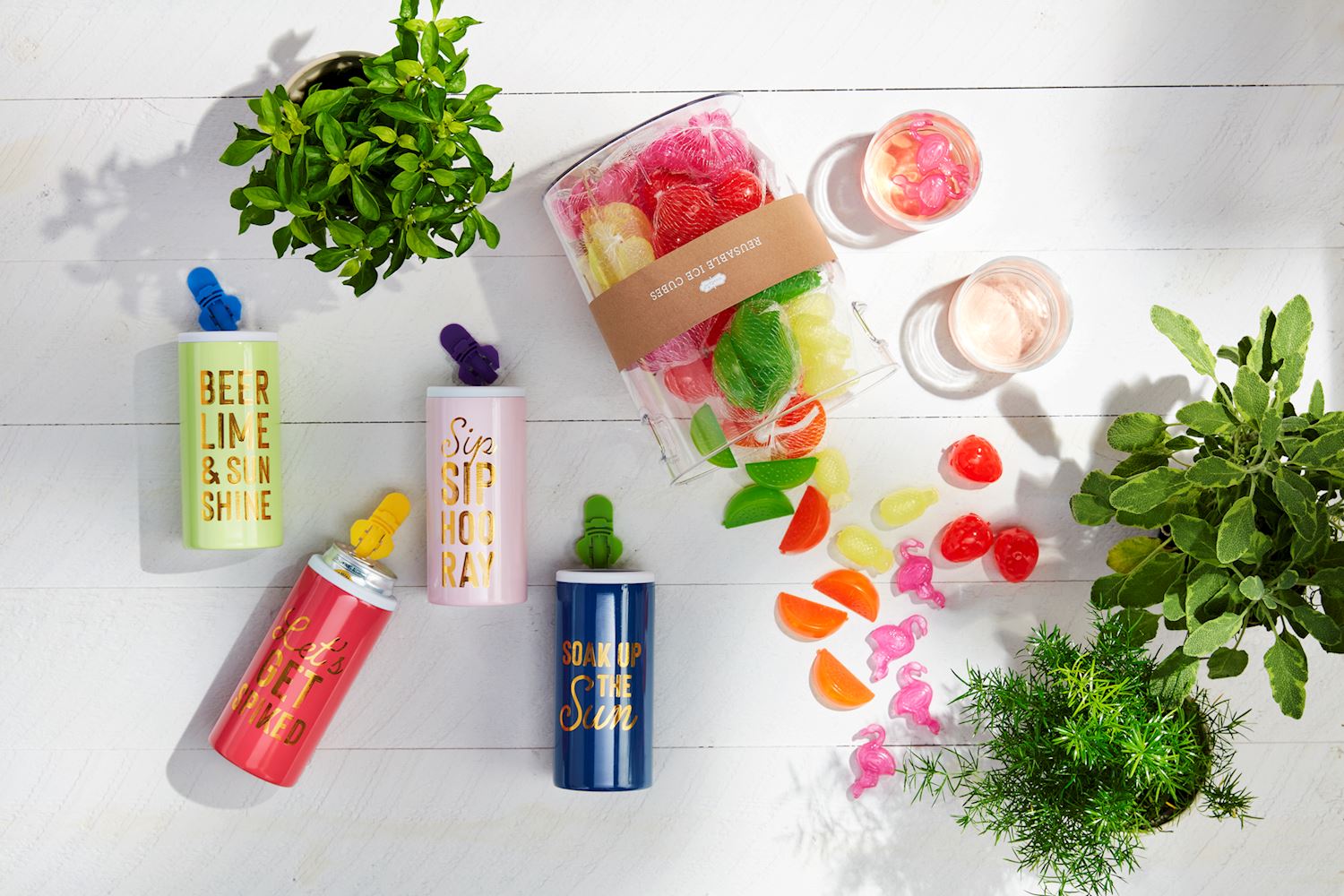 Metal can cooler with plastic can tab popper. Re-seal can by turning and securing popper.