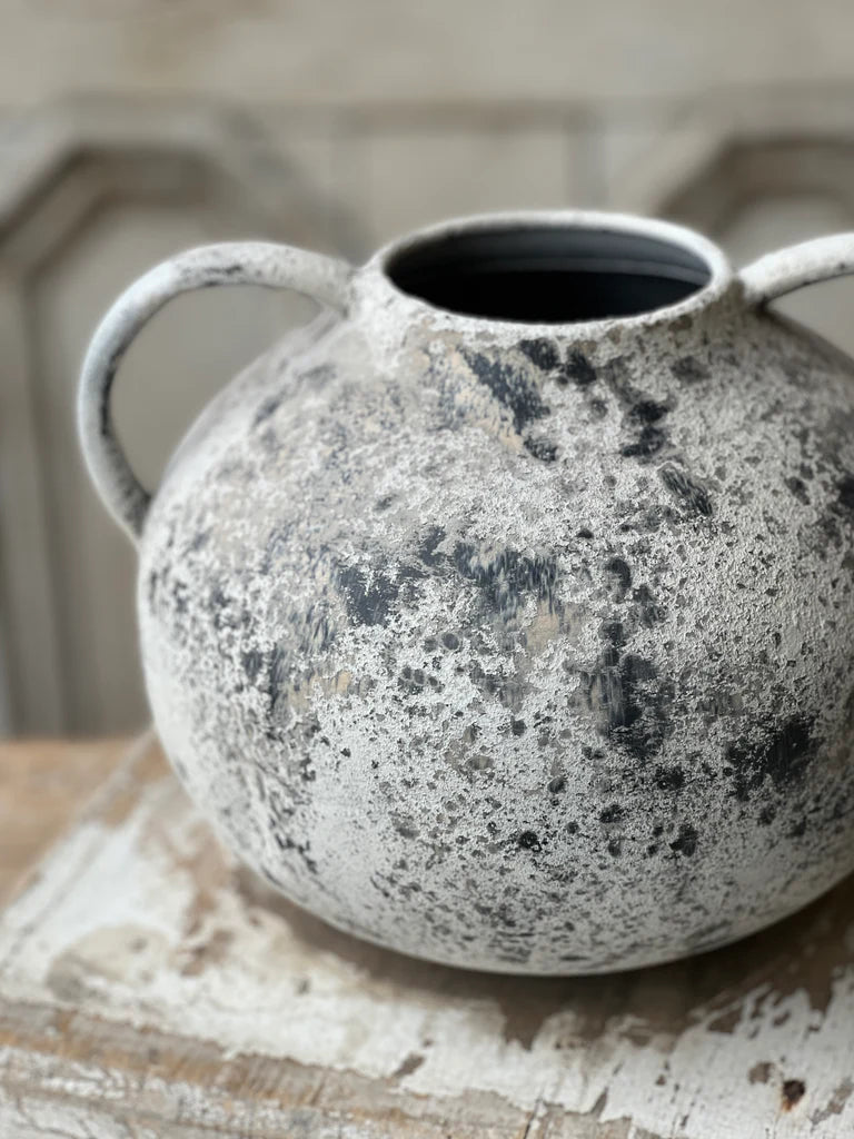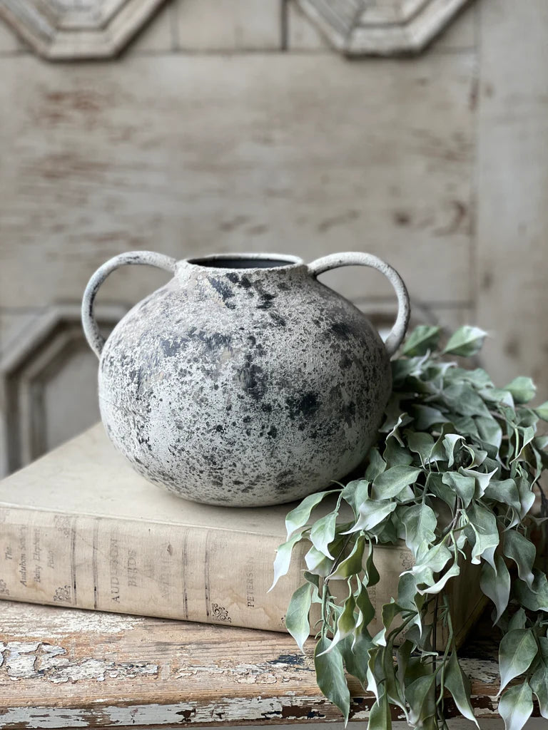 With its rustic patina featuring a myriad of tones and a mottled finish, the Clarice Vessel is an item that can fit into any style or season with ease.  The addition of charming handles completes this lovely silhouette to perfection.