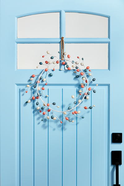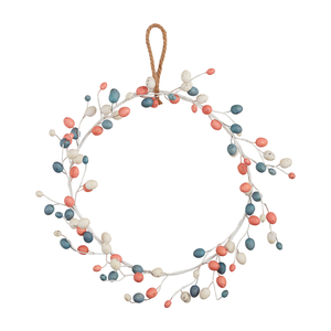 Experience the joy of the season with this egg twig wreath! Embrace the natural charm of faux bois twigs adorned with a delightful assortment of colorful eggs. Suitable for any event, this versatile wreath can enhance your door or wall, bringing an elegant touch to your home decor. Meticulously handmade with care and precision, it showcases the beauty of spring and the holiday spirit. Constructed from durable paper mache, the wreath features a 16" diameter and an 8" drop, making it a perfect addition to your indoor or outdoor space.