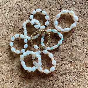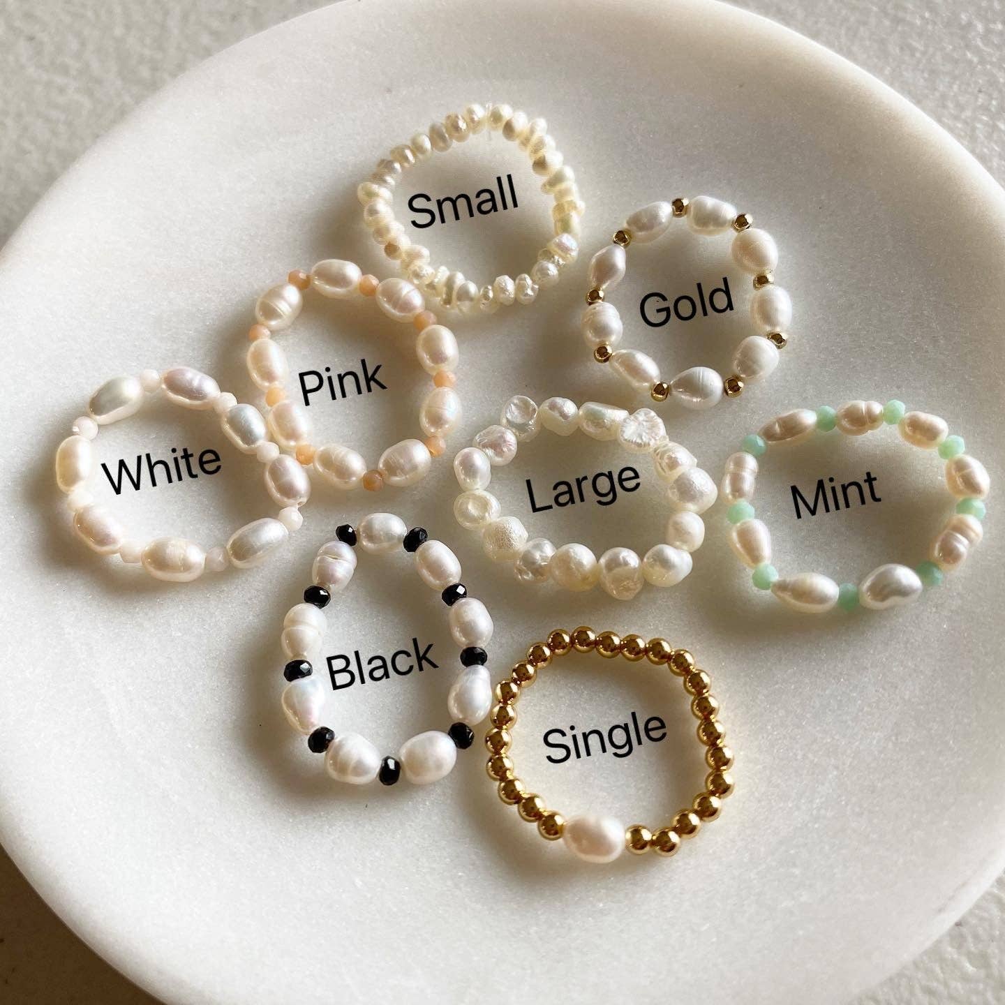 Our Pearl Rings is made from genuine freshwater pearls and a stretchy, but durable jeweler's cord. Elasticated for an adjustable fit.