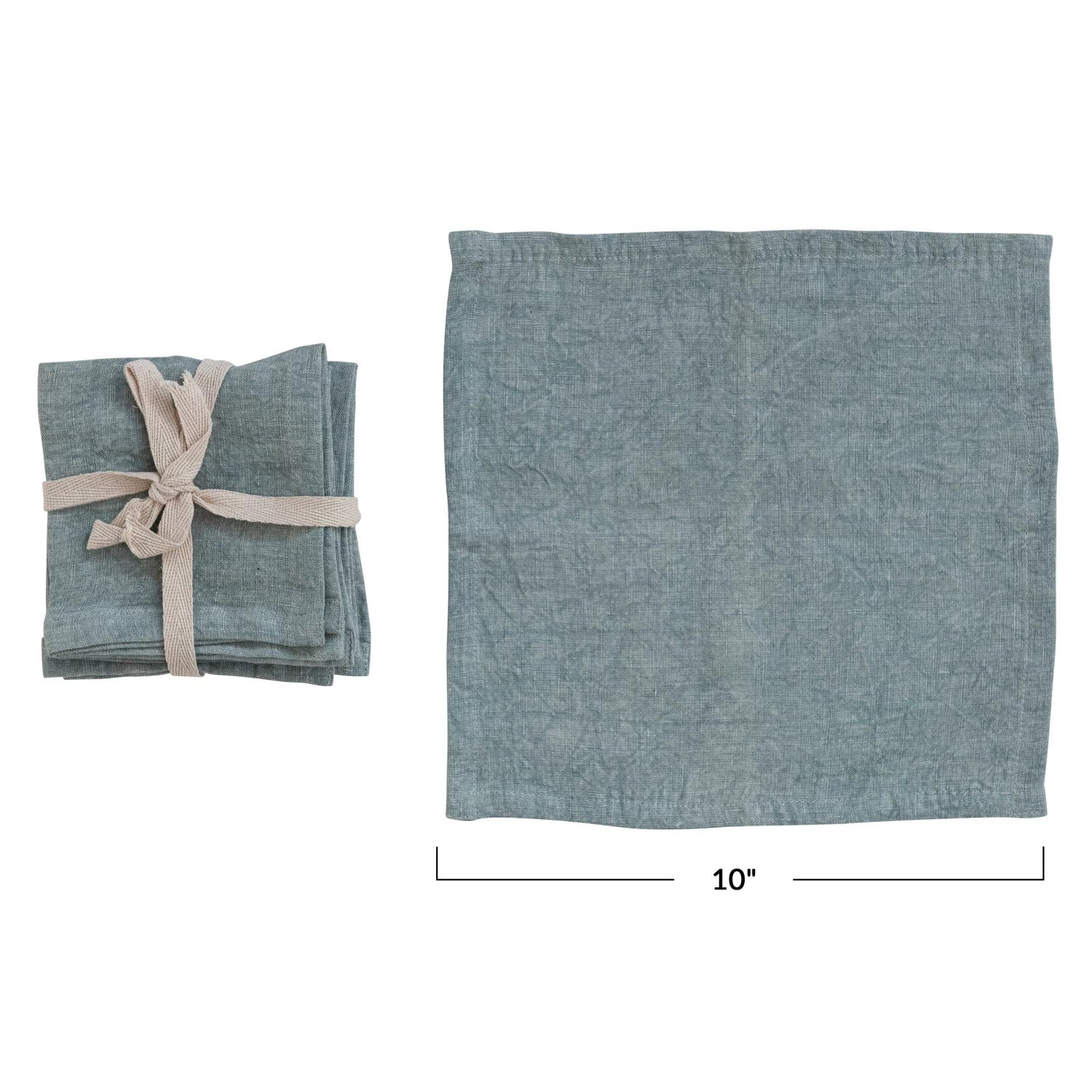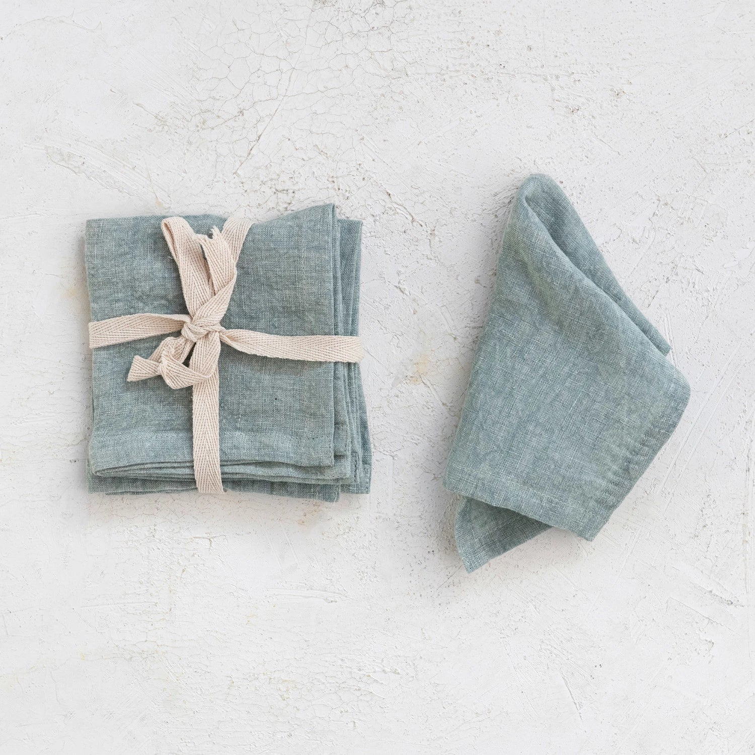 Light Blue Stonewashed Linen Cocktail Napkins - Set of 4