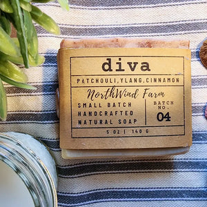 Diva: Patchouli, Ylang, & Cinnamon small batch handcrafted 5 oz natural soap.