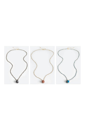 Elevate your style with the Phoebe Necklace featuring stunning glass beads and colorful gemstones. This statement piece is perfect for adding a pop of color to any outfit.