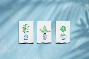 Potted Plant Towels with Blue Crochet Trim - 3 Styles