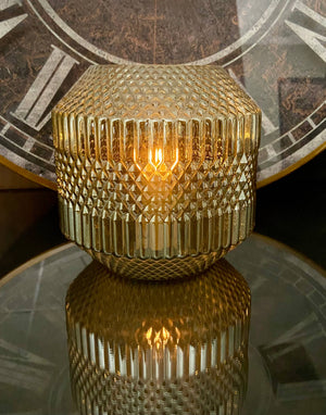 The luminous finish on this vintage glass inspired hurricane beautifully enhances the dancing flame of a Flame Illusion or Radiance Candle. Its classic, timeless aesthetic seamlessly blends with a variety of decor styles, making it a versatile accent piece.